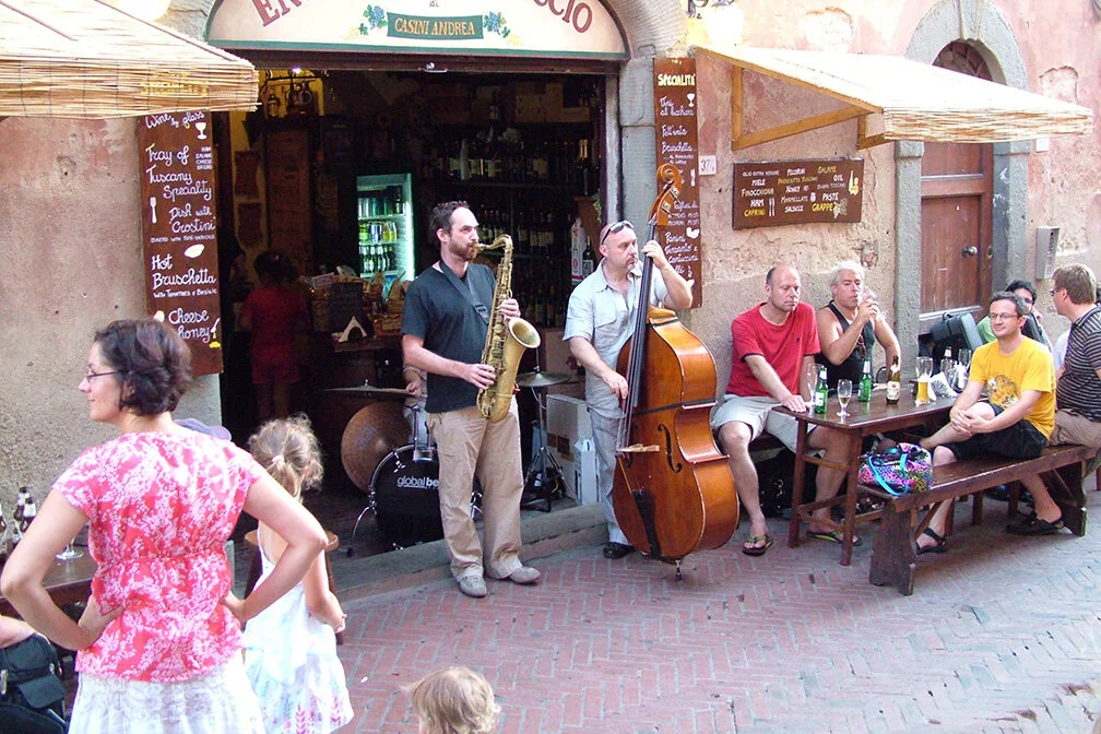 Concerts with International Jazz Legends and Stars, as well as jam sessions and spontaneous Events in prestigious venues and stunning locations.
